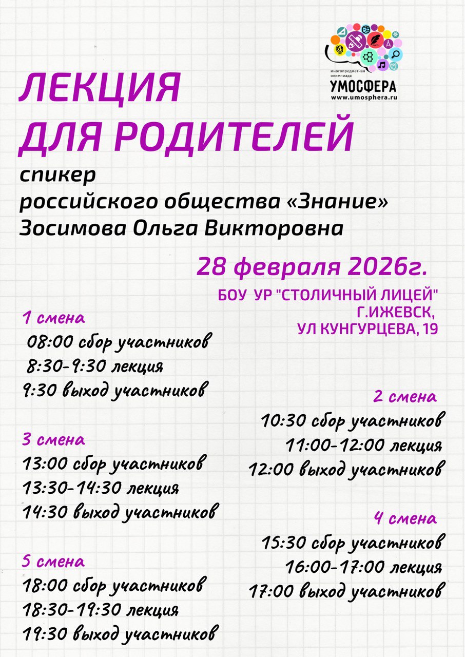 На площадке г.Ижевска - лекция для родителей 28.02.2026